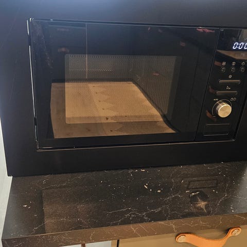 IKEA mikrobølgeovn i hvid. Indbygningsmodel med frontpanel i hvid og rustfri stålkammer indvendigt. Udstyret med drejetallerken i glas og mekanisme til rotation. Kontrolpanel med display, drejeknapper og funktionsknapper til valg af programmer og tid. Egnet til opvarmning og tilberedning af forskellige typer mad som vist på symbolerne ved lågen.