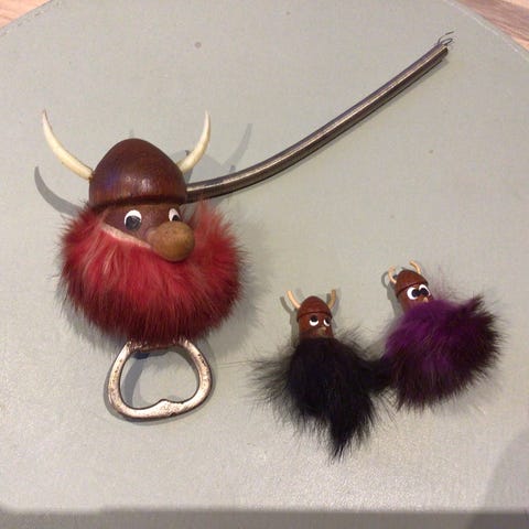 Viking flaskeåbner i teak og messing, højde ca. 15 cm, Vintage dansk håndskåret træ vikingeflaskeåbner