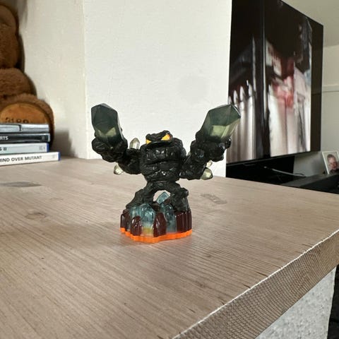 Skylanders figur Rip Tide i blå plastik. Figuren forestiller en haj-lignende kriger med gyldne skulderpanser og et blåt sværd. Velegnet som samlerfigur eller til brug med Skylanders-spil, der understøtter denne karakter.
