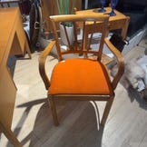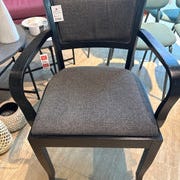 Polstret stol med let buet ryg og armstøtter i mørkt træ, betrukket med lyst tekstil for komfort og stil i indretningen.- Bemærk at mail, chat og beskeder ikke besvares, og varen skal købes på knappen "Gå til varen". Efter reservering af varen har du 10 dage til at afhente den i den butik, varen er på lager i.