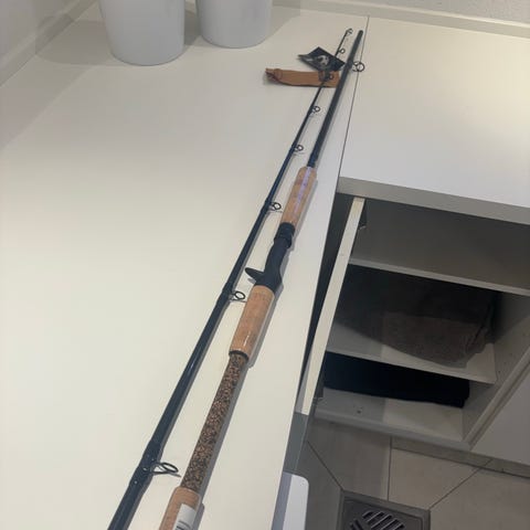 Latterligt fed geddestang til pengene, som kan lidt af det hele. Stangen er som ny (købt for 2 måneder siden og kun brugt 1 enkelt gang).