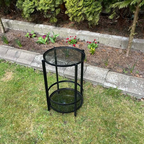 Rundt skrivebord i højglans metal med en sølvbelagt base og en glat overflade, perfekt til moderne kontormiljøer.,Bemærk at mail, chat og beskeder ikke besvares, og varen skal købes på knappen "Gå til varen"