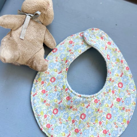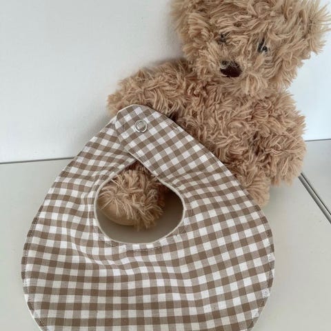 Hjemmesyet tørklæde i lyseblå tern med navnebrodering. Broderitråden kan vælges i blå, brun, rød eller gul. Fra røgfrit og dyrefrit hjem