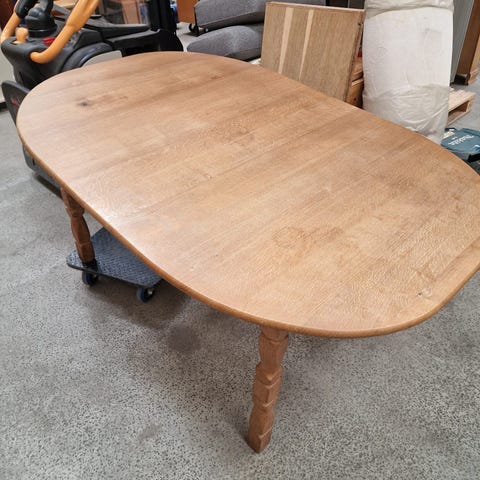 Haslev møbelfabrik egetræs spisebord måler 140cm lang 89cm bred. 2 tillægsplader medfølger á 48cm stk. Pænt brugt stand. Pris 1950kr.