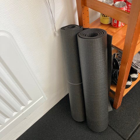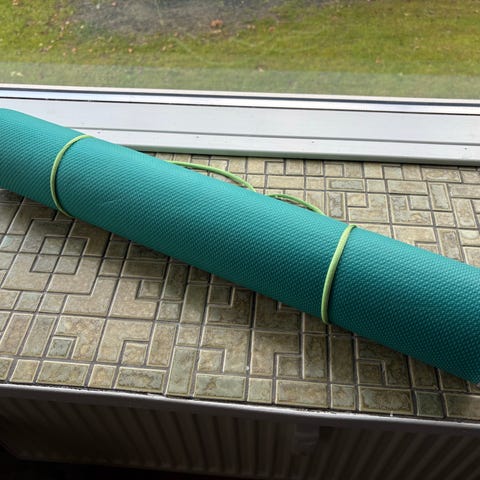 Træningsmåtte / legemåtte i grøn skum. Tykkelsen giver polstring til gulvøvelser, yoga, pilates eller anden træning på gulvet, samt til leg for små børn.