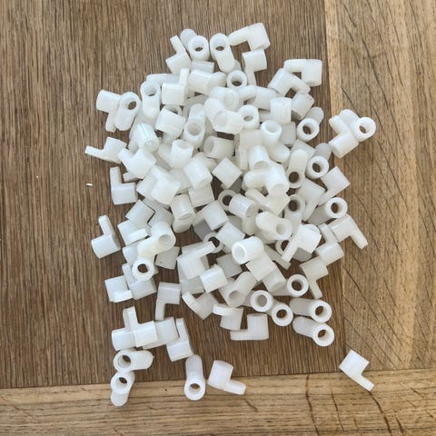 Hvide og sorte kabelsamlere i fleksibel plastik, som kan bruges til at samle og skjule kabler ved fx skrivebord, tv-bord eller andre elektroniske installationer. Farver: hvid og sort. Materiale: plastik.