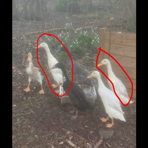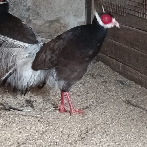And han, velegnet til hold i have eller mindre dyrehold. Fjerdragten er flersfarvet med mørk hals og hoved, lysere krop og orange ben. Billederne viser dyret i udendørs indhegning. Egnede forhold omfatter adgang til vand, foder og læ for vejr og vind. Sælges som levende tamand til privat dyrehold eller hobbybrug.