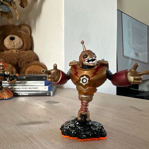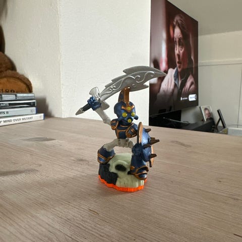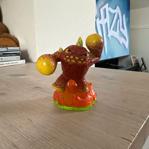Skylanders Hot Head legetøjsfigur. Figuren forestiller en ild- og lavafigur i rød og orange med hævede arme. Den er beregnet til brug sammen med Skylanders-spil og portaler, hvor figuren kan placeres på portalen for at blive aktiveret i spillet. Velegnet som samlerfigur eller til leg med andre Skylanders figurer.