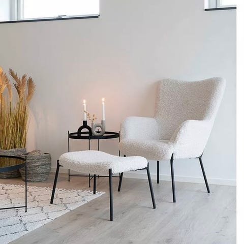 Lænestole 2 stk. Teddystof. Sæde- og ryghynder i skum. Ben i stål. B72 x H98 x D80 cm
