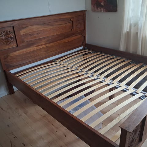 2 sengeborde, lamper og madrasser følger med.