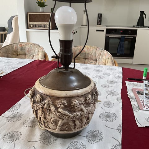 antik Art Deco bordlampe fra omkring 1930'erne, der forestiller en bjørneskulptur
