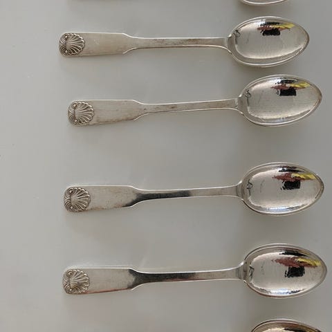 sølv, kerubknop, krydsriller, barok, uklart mestermærke, Uppsala, sandsynligvis 1707, længde 15 cm, vægt 29,1 g, små buler.
