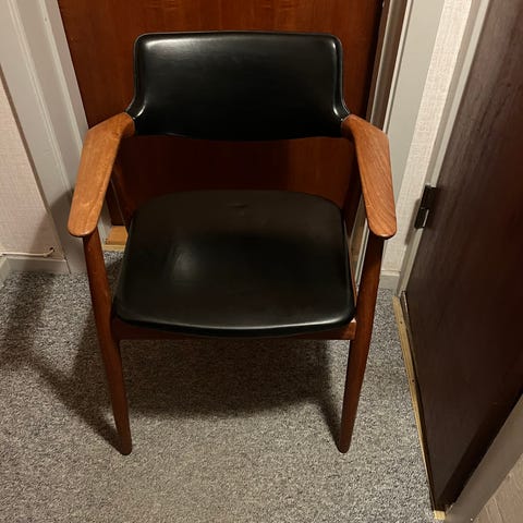 Hvad hedder denne model? Skal sælges billigt og hurtigt Giv et bud Jeg tror det er teak stol savbukkestol læderstol
