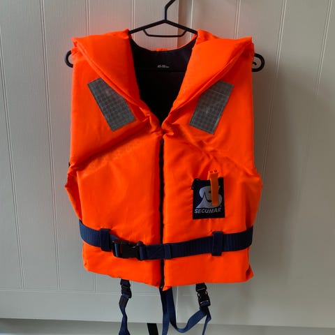 Sælger to Secumar redningsveste til voksne i blå med rød kant.