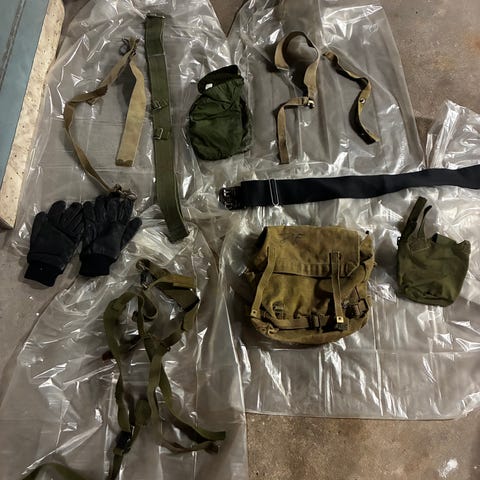 Der er både tjenesteskjorte, baret, kniv/bajonet, sløringsnet, garnisonsbælte, feltkogesæt/feltspiseredskab, felthue/bøllehat, m/96 bælte, gasmasketaske osv.
