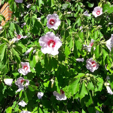 Hibiscus, gammel sort, fyldt og rød.