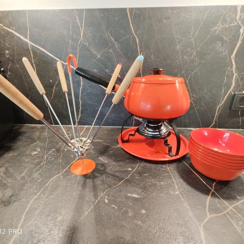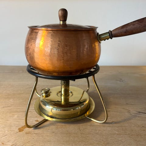 Unikt retro fondy sæt i kobber med 2x10 smukke "gafler"