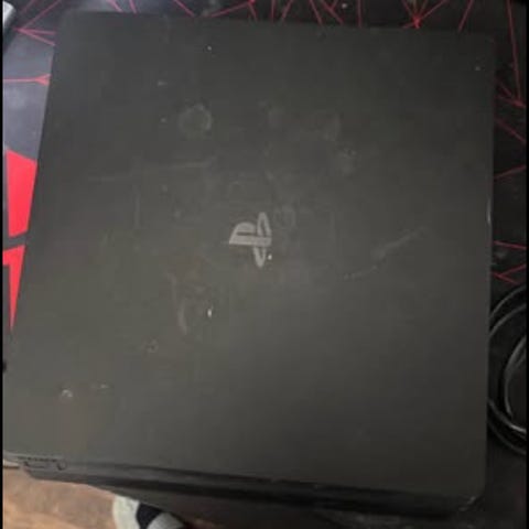 Sony Playstation 4 konsol i sort farve med to trådløse DualShock 4 controllere. Medfølgende strømkabel og spillet EA Sports FC 26 på fysisk disk til PS4. Konsollen er egnet til afspilning af PS4-spil, streaming af medier og brug af diverse apps, mens de to controllere gør det muligt at spille lokalt multiplayer.
