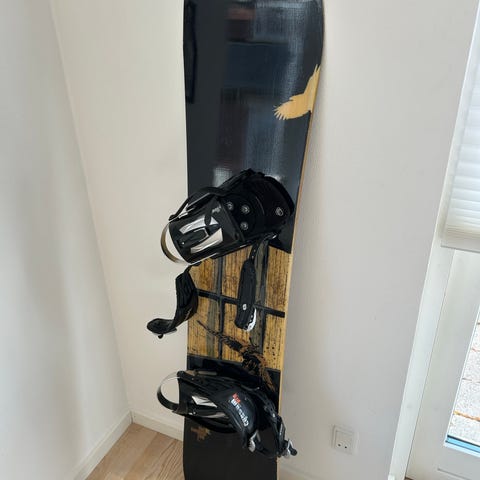 Snowboard med bindinger.