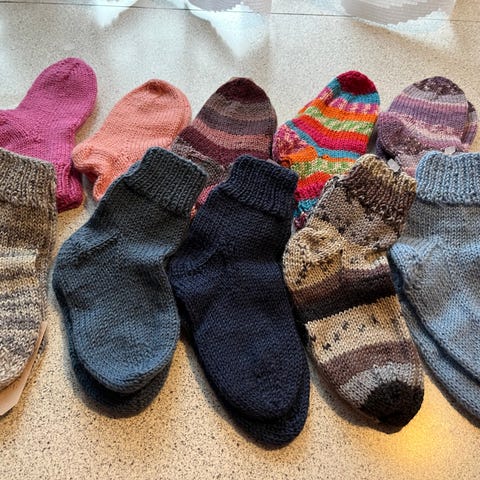 Nye hjemmestrikket strømper str. 4 år., Strikket i strømpegarn. Pr. Par kr. 25,-