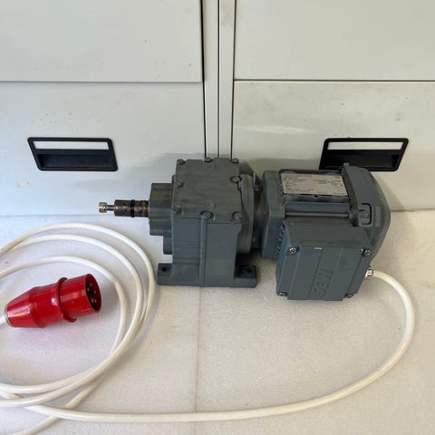 400V gearmotorer med kædetræk og tandhjul. Der er monteret en form for måske hastigheds regulator.