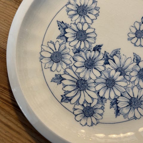 Engelsk fajance Wedgwood “Marguerite” 6 små og 6 mellem tallerkner i blå/hvid