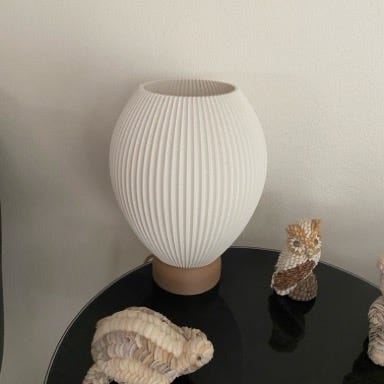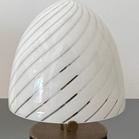 Mushroom bordlampe i hvidt glas med spiraler fra Søstrene Grene.