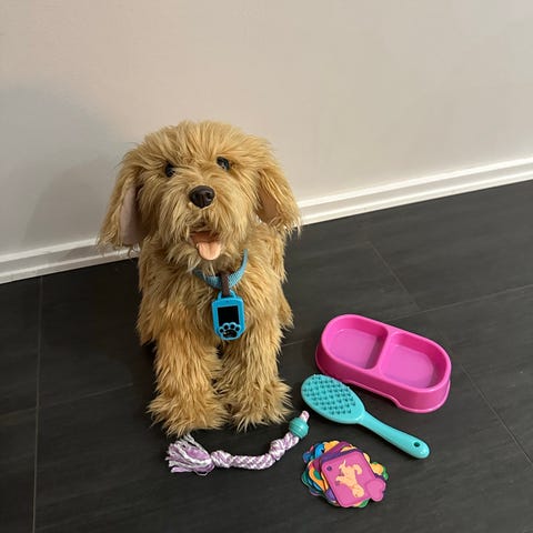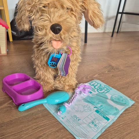 Moji er en elskelig interaktiv Labradoodle med mere end 150 interaktioner. Moji kan lave masser af tricks og reagerer ved berøring og kommandoer.