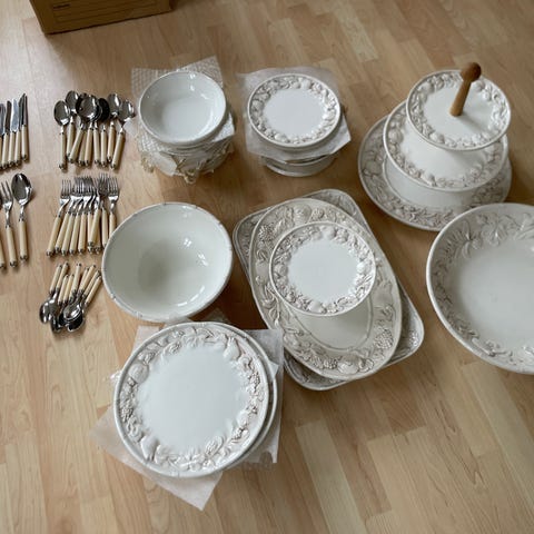 Der er en mikro brun plet i glasuren på 2 af tallerknerne - se billeder
