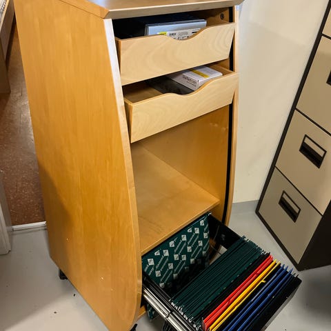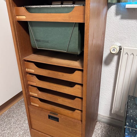 Skab med jalousilåge, på hjul