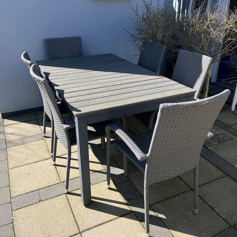 Sættet er egnet til udendørs brug på terrasse eller i have.