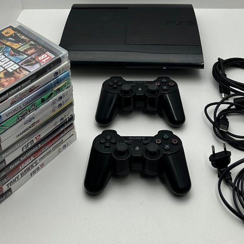 Sony Playstation 3 slim 500 Gb med controllere og spil