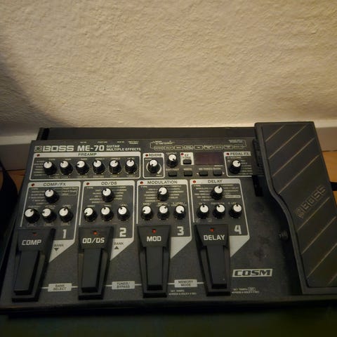 Boss ME-70 Guitar Multiple Effects pedal sælges. En alsidig multi-effekt til guitar med COSM-teknologi og dedikerede sektioner til Comp/FX, OD/DS (overdrive/distortion), modulation, delay, reverb samt indbygget ekspressionspedal til wah og volumen. Perfekt til guitarister der vil have et bredt lydspektrum i én enhed — betjeningen foregår via knapper og er hurtig og intuitiv uden komplicerede menuer. Brugt, men fremstår som ny. Kun afhentning.