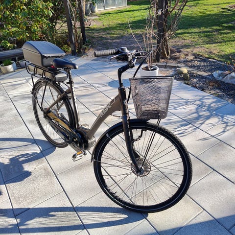 Bagfælg er lidt skæv, og dæk er slidt. Trænger til vedligeholdelse- evt. bruges som reservedele.