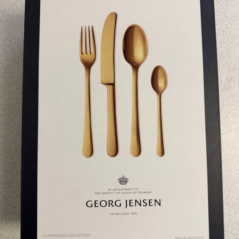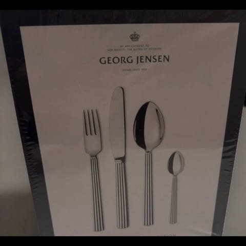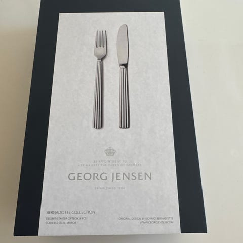 Georg Jensen bestiksæt. Komplet. I alt knap 80 dele. Sættet omfatter knive, gafler, spiseskeer og teskeer og kagegafler.