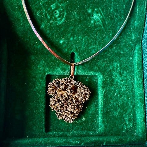 Smuk patineret ældre Flora Danica halskæde med rosenknop i forgyldt sølv.