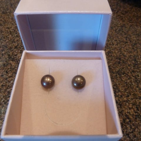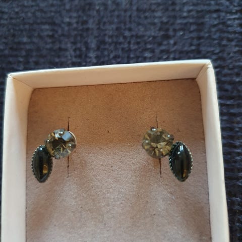 Sorte ørestikker, måske det der hedder rordineret sølv. Næsten ikke brugt.