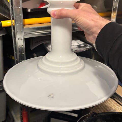 Holmegaard Mythos pendel, en designklassiker i hvidt mundblæst opalglas.