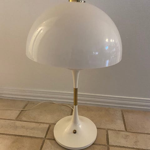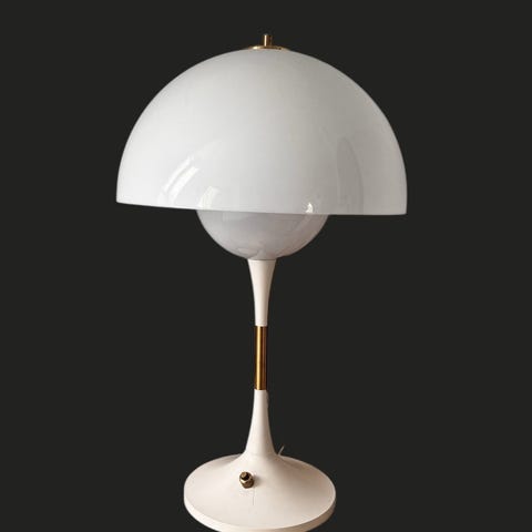 Klassisk Karlby lampen - forløber til Pantons berømte ditto! Akryl og messing - med aldersrelaterede spor