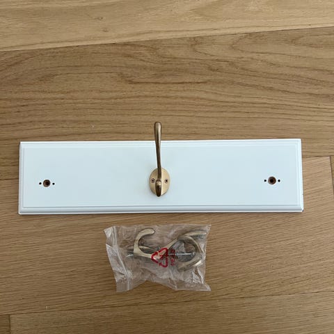 Bagpå er det ene ophængsstykke faldet af væggen - så den har været skruet k væggen for at sidde ekstra godt fast og holde på alle slags jakker.