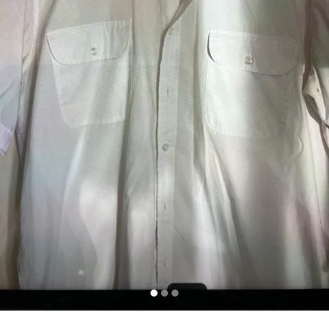 Mango skjorte herre kortærmet, hvid med beige/sorte striber, str medium. Kommer fra røg og dyrefrit hjem