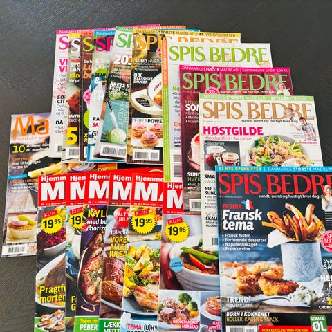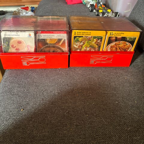 Kasser med mange forskellige opskrifter. Stammer fra et abonnement som hed Hjemmets Spisekort klub. Så elsker du at lave mad, så er disse noget for dig.