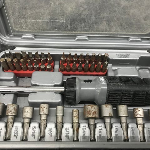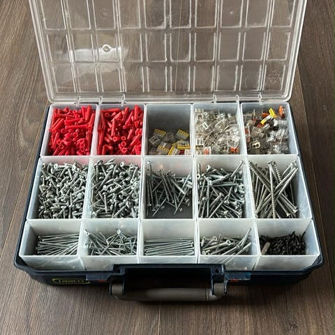 En kasse med forskellige træ skruer 40 50 60 70 og 80 mm lange