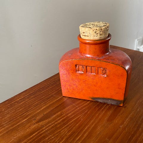 Lille orange keramik krukke med korkprop