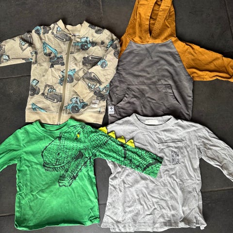 Fin pakke med 6 t-shirts i str. 98/104 fra bl.a. H&M, Minymo og Primark.