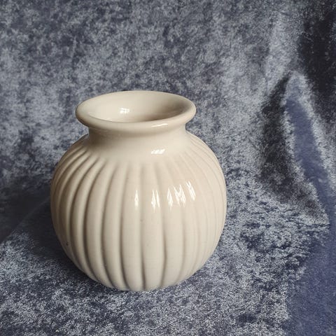 Smuk riflet vase i klassisk hvid glasur fra L. Hjorth.