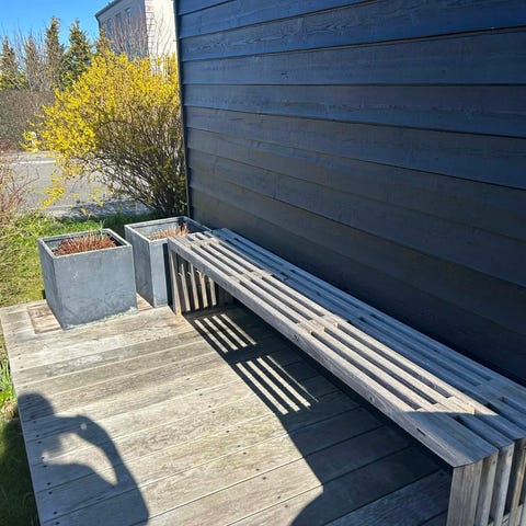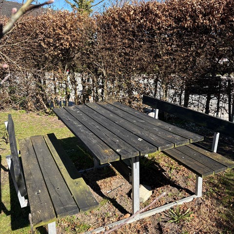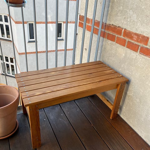 Havebænk, to stole og et fold-ud-bord fra IKEA i træ