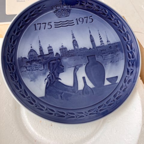 Rigtig flot platte fra Royal Copenhagen - motivet er fra Amager Torv og med Royal Copenhagen´s første butik.