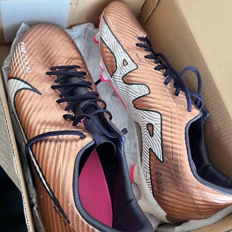 Nike fodboldstøvler i sort. Klassisk snørelukning og lavt skaft. Overdel i syntetisk materiale med struktur for bedre boldkontrol. Ydersål med knopper velegnet til spil på græs. Indersål i blå farve. Egnet til fodboldtræning og kampbrug.