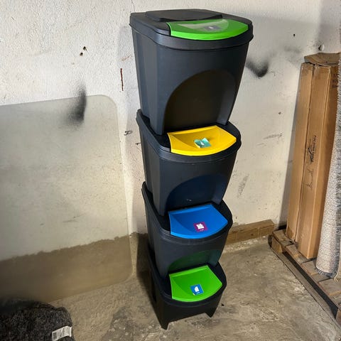 To galvaniserede metalspande med låg. Kan anvendes til alt muligt.